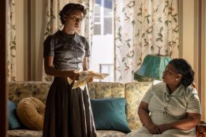 Writer/director Chinonye Chukwu tells this story “from the maternal point of view of Mamie Till-Mobley.” We see Mamie (Deadwyler) singing and dancing with 14-year-old Emmett (Hall). She ties his necktie, helps him pack, loves him deeply.