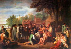 “The public apology was particularly apt, as Lancaster was the site of the infamous Conestoga Massacre of 1763. A remnant of the once numerous Susquehannock Indians, who were subjugated by the Iroquois, ravaged by disease and famine, and harassed by settler militias in Maryland and Virginia, had eventually settled along the Conestoga Creek near Lancaster, on land granted to them by William Penn himself in a 1701 treaty. Their numbers had dwindled to less than two dozen, and despite the fact that they had always lived peacefully with their European neighbors, their position became precarious when hostilities along the frontier resumed in 1763…The Conestoga Massacre came to symbolize the eventual failure of William Penn’s ‘Holy Experiment.’”