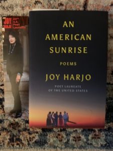 Pensively, she concludes, “It is difficult, very strange, to go to your homeland and your people are not there. To go to a place of ethnic cleansing brings a lot of grief. We even found houses in Georgia that belonged to my relatives. But there is a lot of beauty there as well.” Harjo likened her experience to what is happening in the world today—forced immigration and captivity. And just before she read, she states that she’s been working with Native poets on an anthology called When the Light of the World Was Subdued, Our Songs Came Through: A Norton Anthology of Native Nations Poetry, due Fall 2020.
