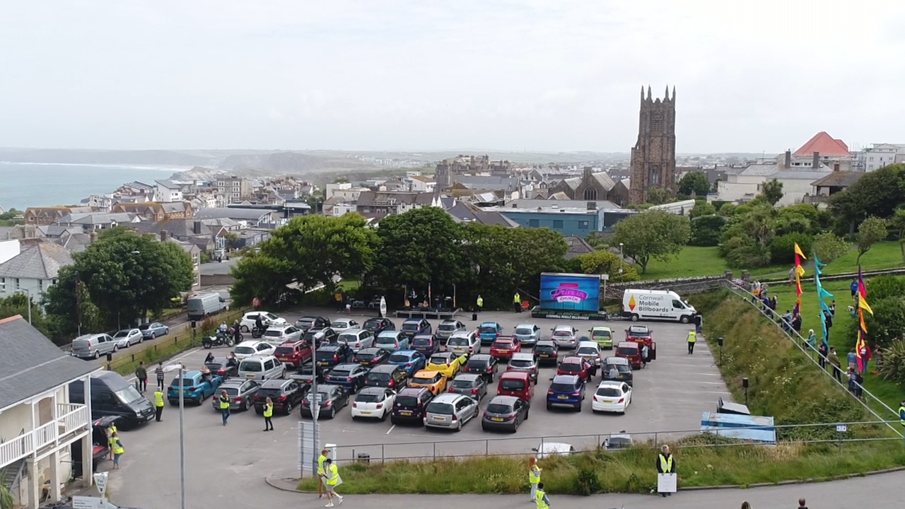 Newquay, England (ANS) – A surfer vicar in the coastal town of Newquay in the South of England hosted the first ever drive-in church in the country after overcoming local government opposition.