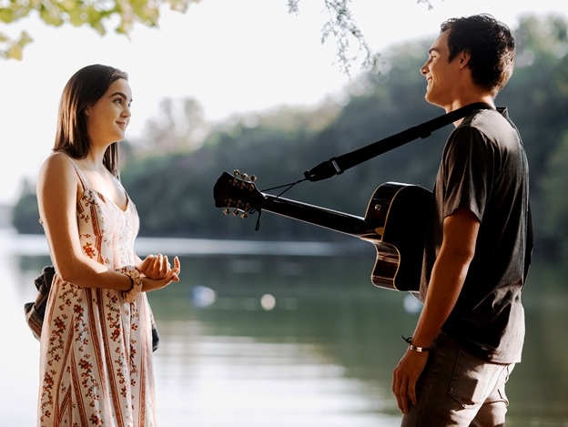 Avery (Bailee Madison) and Will (Kevin G. Quinn) on lakeside connection.