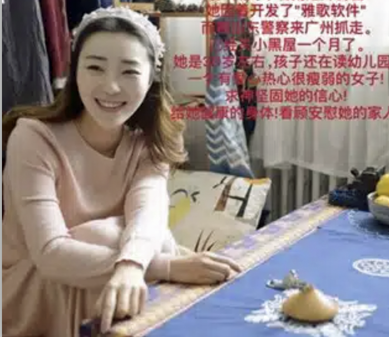 young Christian sister who was taken away by the police due to her involvement in developing the Christian app “Song of Songs.”