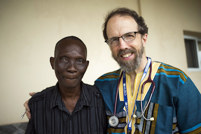 Dr Rick Sacra with a Liberian patient