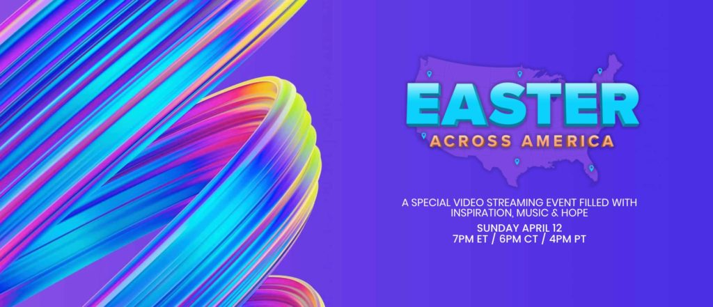 #EasterAcrossAmerica is a passion project of Katie Allred and Kenny Jahng of ChurchCommunications.com and the team at ChurchFuel.com. All speakers, presenters, comedians, and musicians are volunteering their time and talent out of a common desire to bring hope, joy, and inspiration to America during the COVID-19 pandemic. Pro-bono services are being provided by TwelveThirty.Media for video production; ReachYourCity.com for talent management; and CV Global for live stream production. Learn more at EasterAcrossAmerica.com