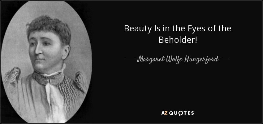 Summarizing centuries of sentiment concerning beauty—from Greek philosophers to Shakespeare and Benjamin Franklin, author Margaret Wolfe Hungerford coined the phrase, “Beauty is in the eye of the beholder.”[4]