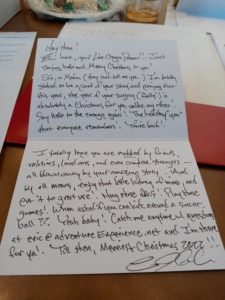 Instead, a coordinator handed him an unsigned Christmas card in which Sprinkle wrote his desire to connect with the recipient.