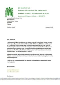Jim Shannon’s letter to Prime Minister Imran Khan