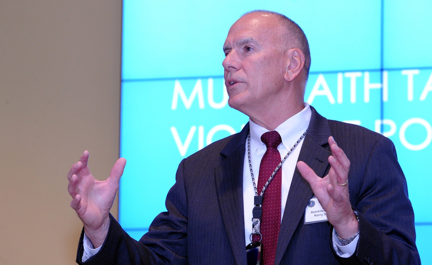 Assistant Director Kerry Sleeper of the FBI’s Office of Partner Engagement speaks at a meeting of faith leaders at FBI Headquarters Tuesday.