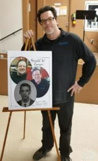 Photo captions: 1) Linus Carver at Harold Eansor’s Celebration of Life service. 2) Linus Carver serving food at Joy Junction. 3) Jeremy and Elma Reynalds.